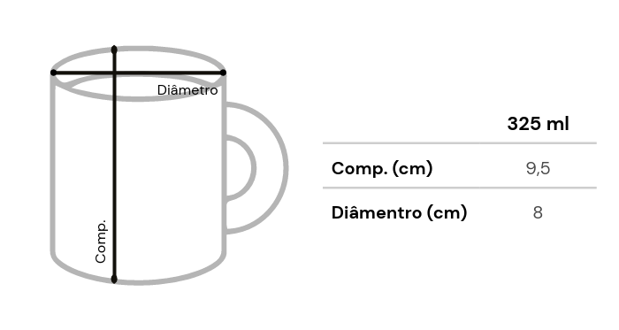 Para maior durabilidade da sua caneca personalizada, recomendamos que na hora da limpeza não utilize máquina de lavar louças.